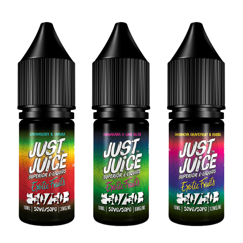 A range of exotic, fruity 50/50 e-liquids by Just Juice, available in 3mg, 6mg and 12mg.